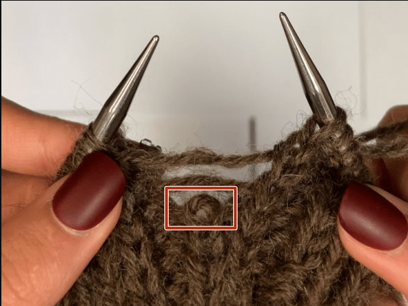 When recording the video, I walked slowly through the process of picking up the dropped stitch. This allowed me to capture high-quality images with no blur. Additionally, grabbing screenshots of the process in action helped me refine my steps when it was time to write. Once I collected enough screenshots, I marked them up with arrows and boxes as needed for clarity. See below for examples of the marked up screenshots.